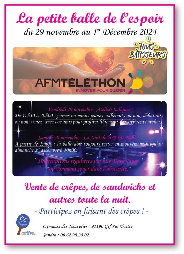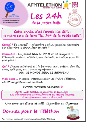 du 29 novembre au 1er décembre 2024 : TELETHON – La petite balle de l’espoir