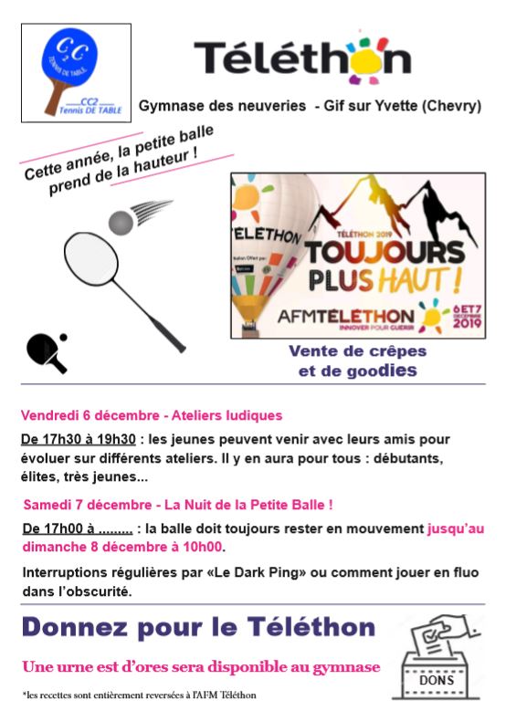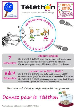 Comme chaque année, la section Tennis de Table s’investit dans le Téléthon !