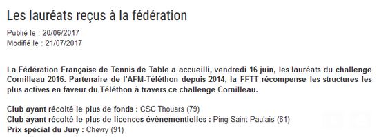 Extrait du site de la fédération de tennis de table
